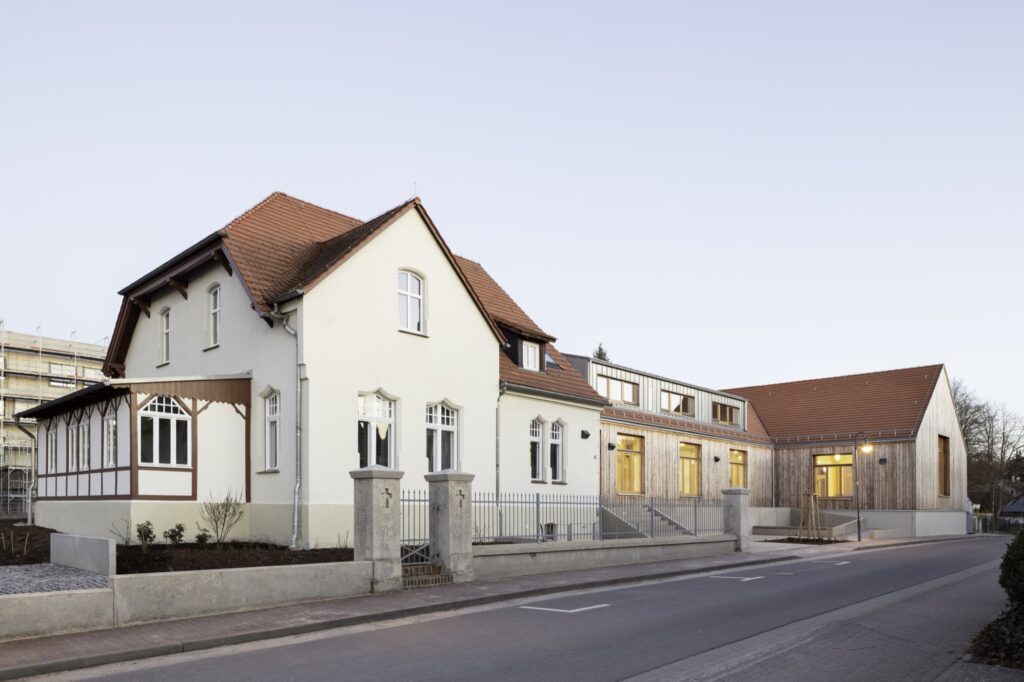 Das Projekt von Krekeler Architekten basiert auf einem Wettbewerbsgewinn und verfolgt das Ziel, das ortsbildprägende Gemeindehaus zu erhalten und durch einen Neubau in Holzrahmenbauweise zu ergänzen.